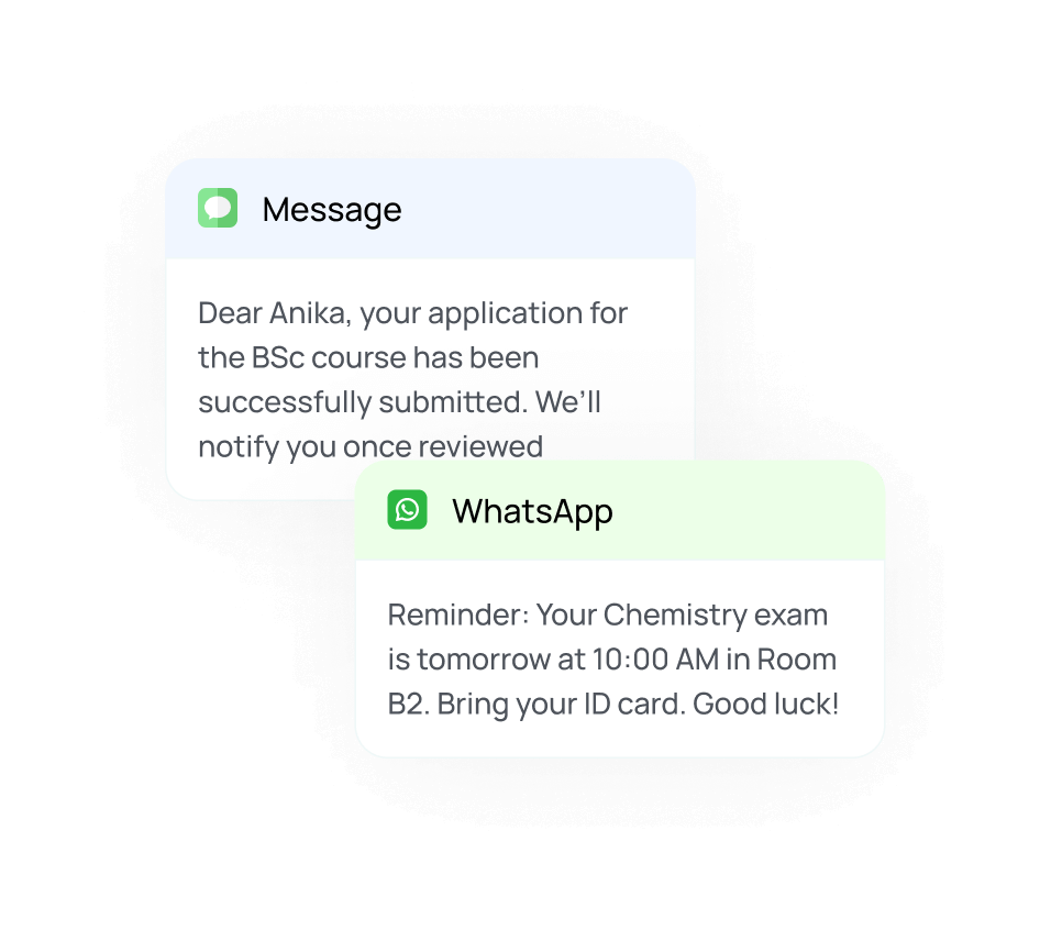 Send schedules, exam notices, and real-time updates directly to students and parents.