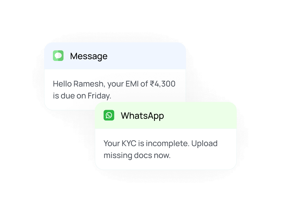 From KYC to reminders, tailor every message to the user’s context and behavior.