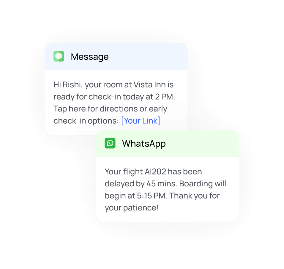 Send boarding passes, flight delays, or activity reminders instantly.